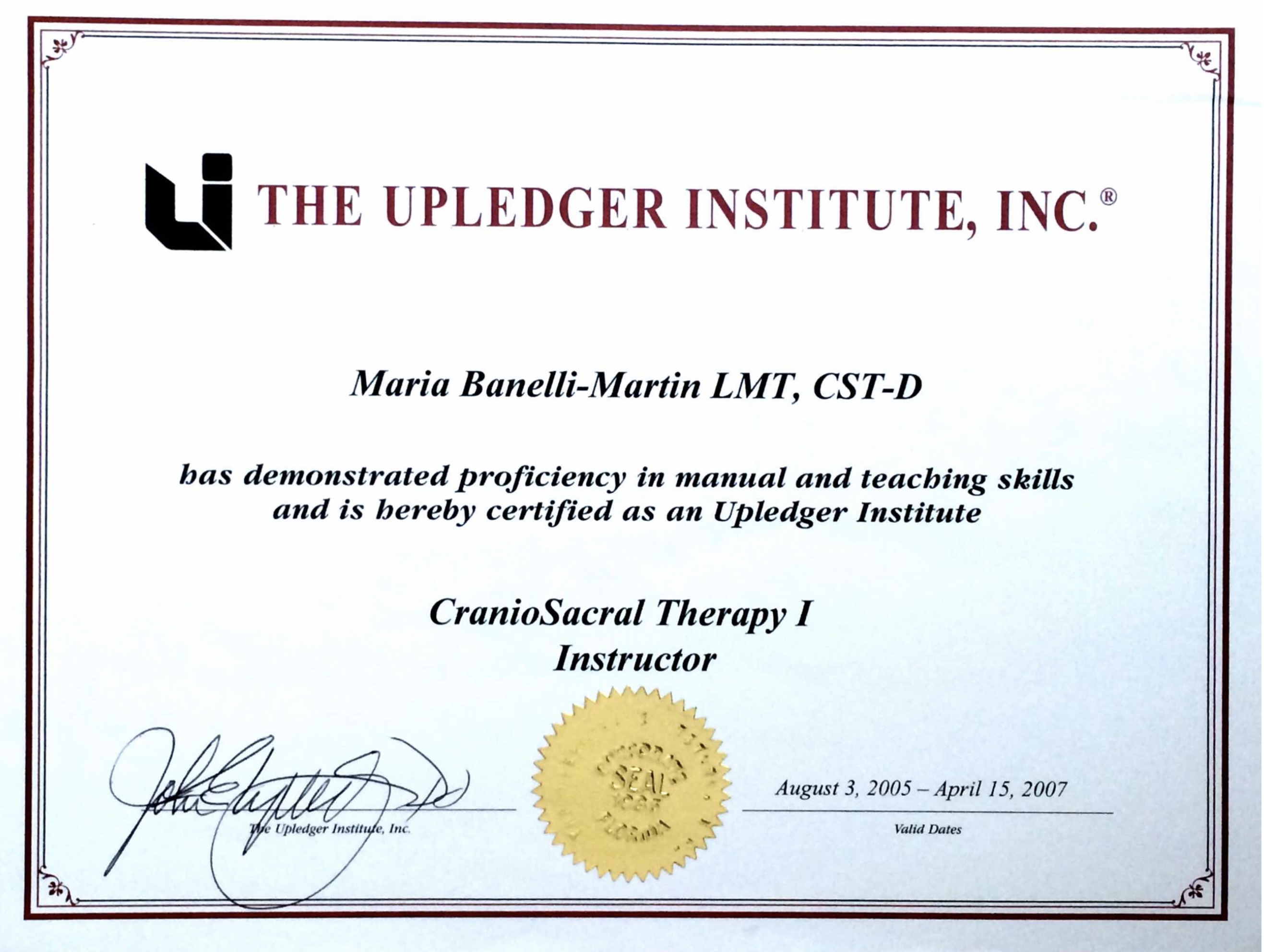 - seit 2005 zertifizierte Craniosacral-Lehrerin des Upledger Institut International
